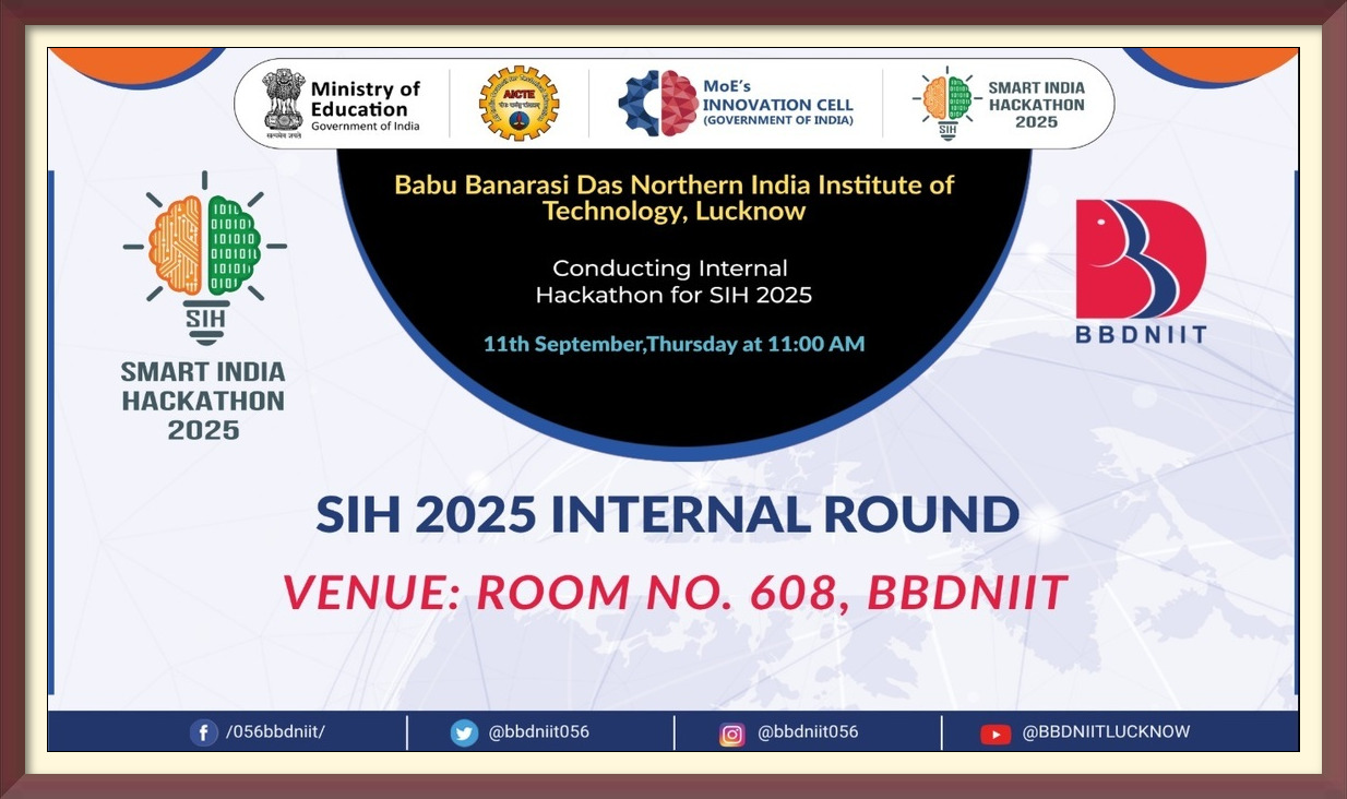 BBDNIIT SMART INDIA HACKATHON 2025 [SIH 2025] INTERNAL AUDITIONS BY TECHNICAL COMMITTEE2025-10-062025-10-06https://bbdniit.ac.in/wp-content/uploads/2019/06/niit-3.jpgBBDNIIThttps://bbdniit.ac.in/wp-content/uploads/2025/10/website-banner.jpg200px200px